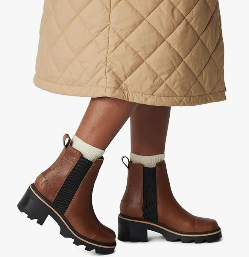 An elevated tackle a Chelsea boot, these Sorel Joan Now boots have a block heel, a lug sole, and a glossy form. You possibly can stomp across the metropolis in these beauties through the day after which costume them up for dinner at night time with a sweater costume.