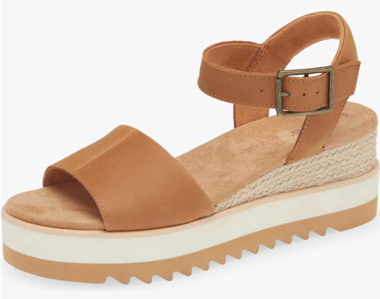 In case you’re searching for a dressier sandal with some top, go for a sturdy wedge like these cute wedge sandals by Toms. This platformed pair will hold you feeling strong on cobblestone roads, with an opulent footbed and smooth straps including to the consolation.