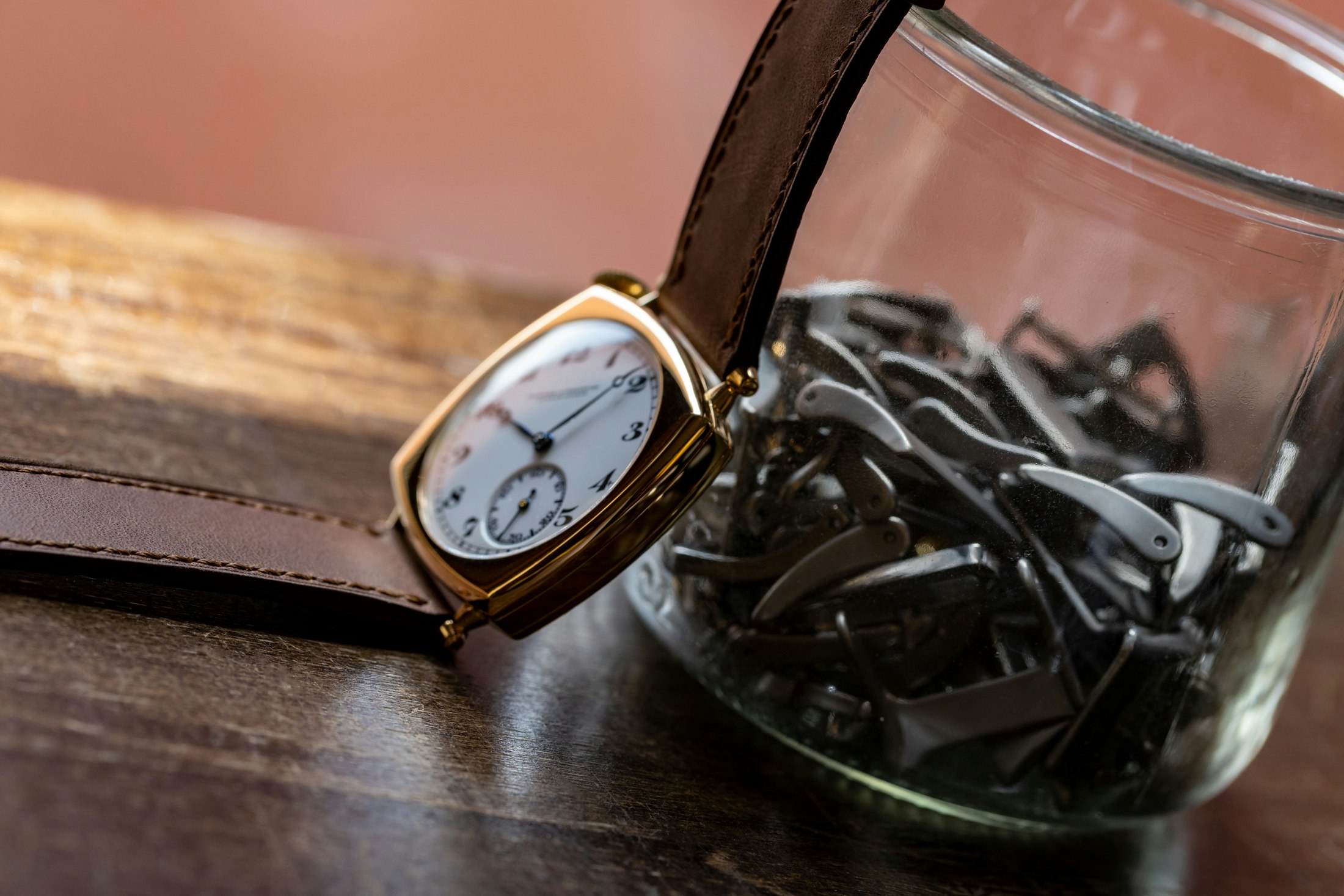 Whereas the case is just not new outdated inventory, it was made utilizing methods that might have been instantly acquainted to a casemaker from the Twenties. Parts had been turned and formed by hand and polished by hand, and the caseback engraving was performed by hand as effectively.