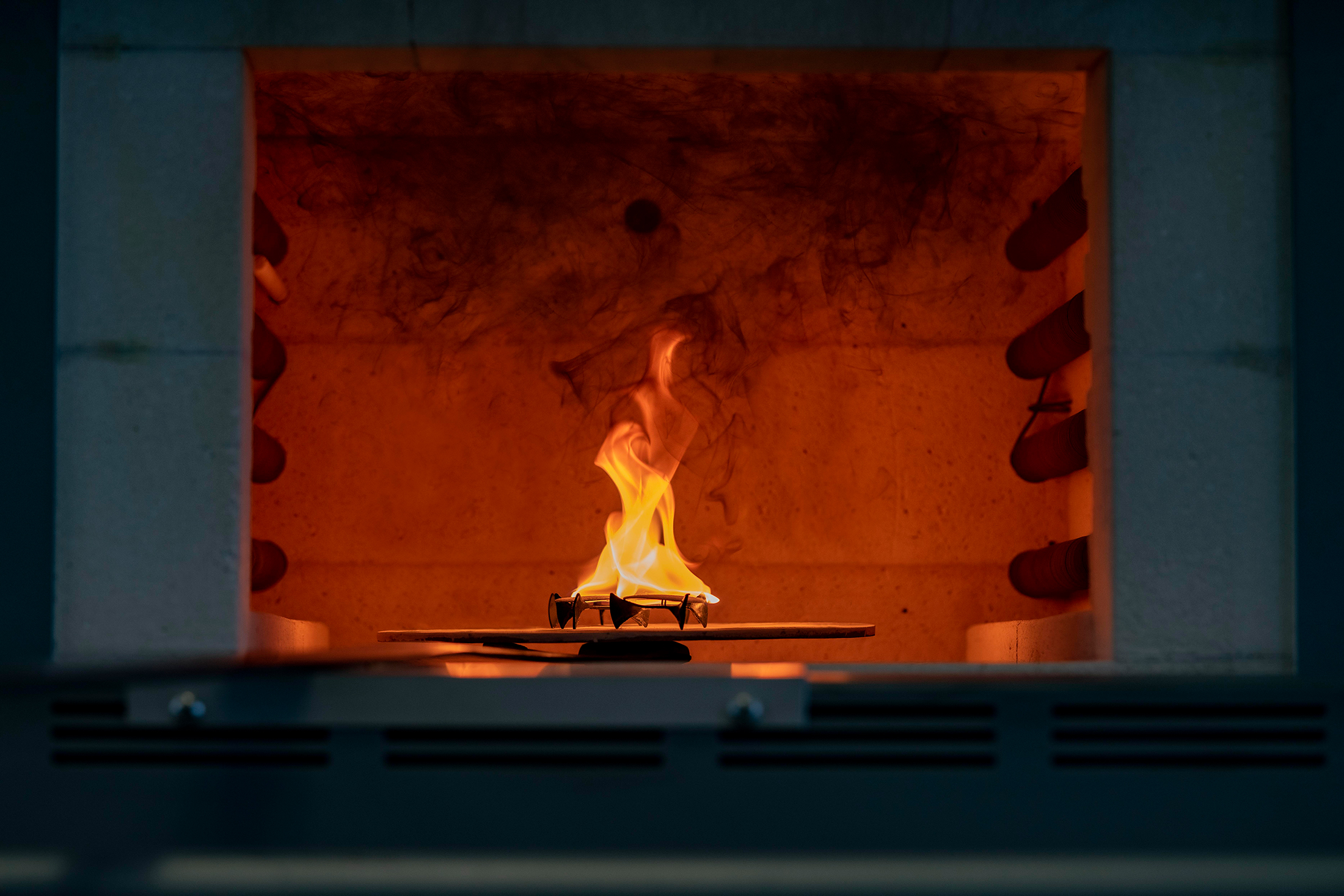 The enamel dial being fired within the kiln.